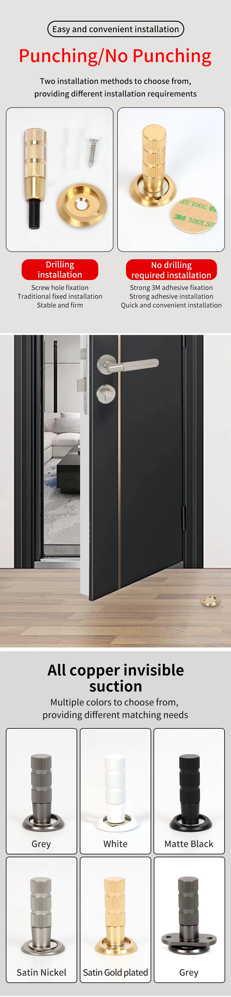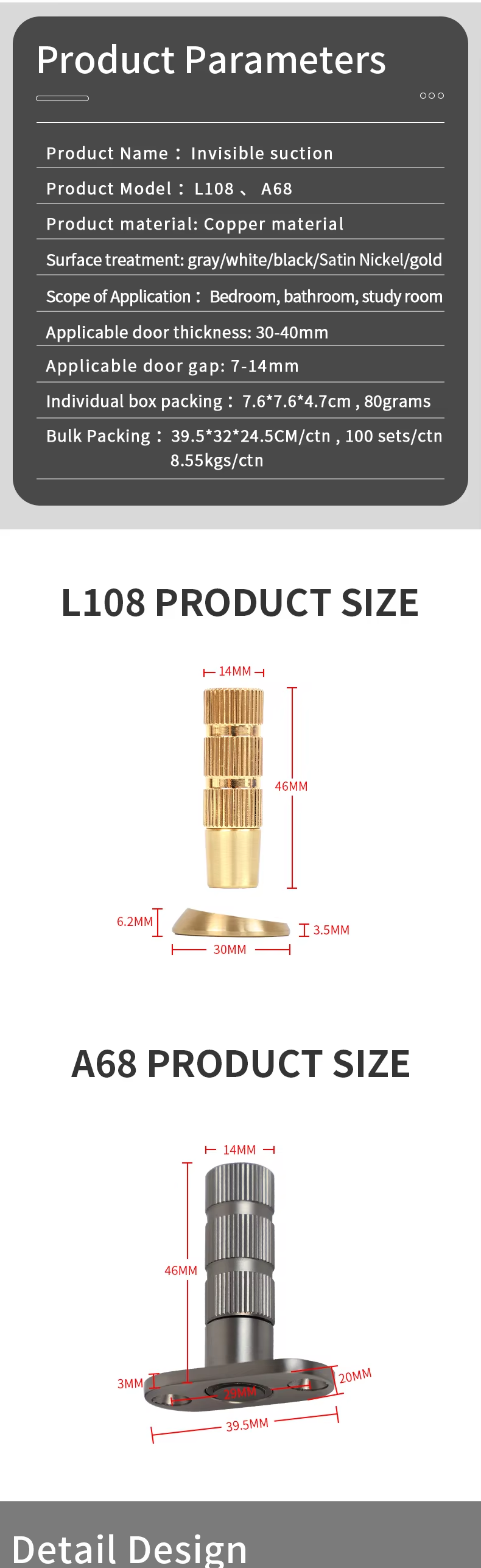 L108 Solid Brass Adjustable Telescoping Door Stopper