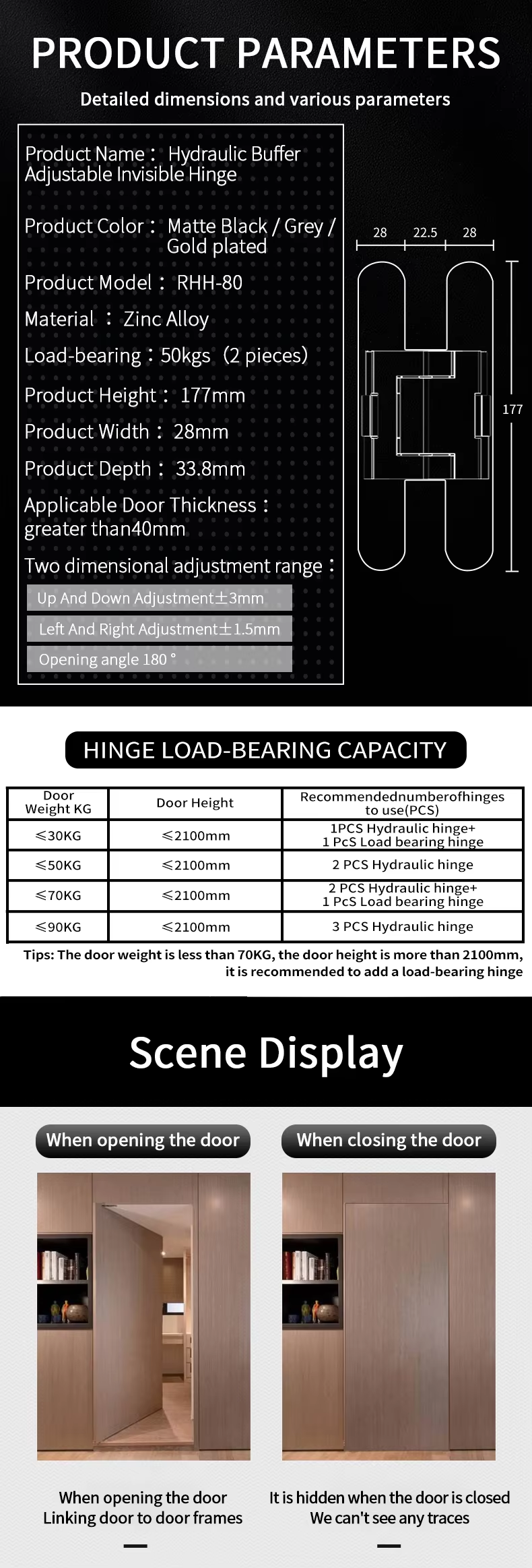 RHH-80 New Technique Hydraulic Buffer Adjustable Invisible Hinges